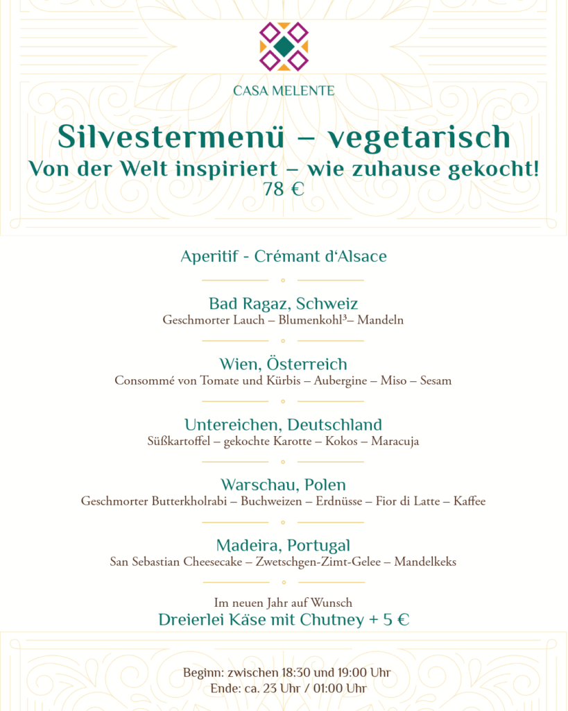Silvestermenü vegetarisch oder mit Fleisch – Reservierungen ab jetzt möglich!